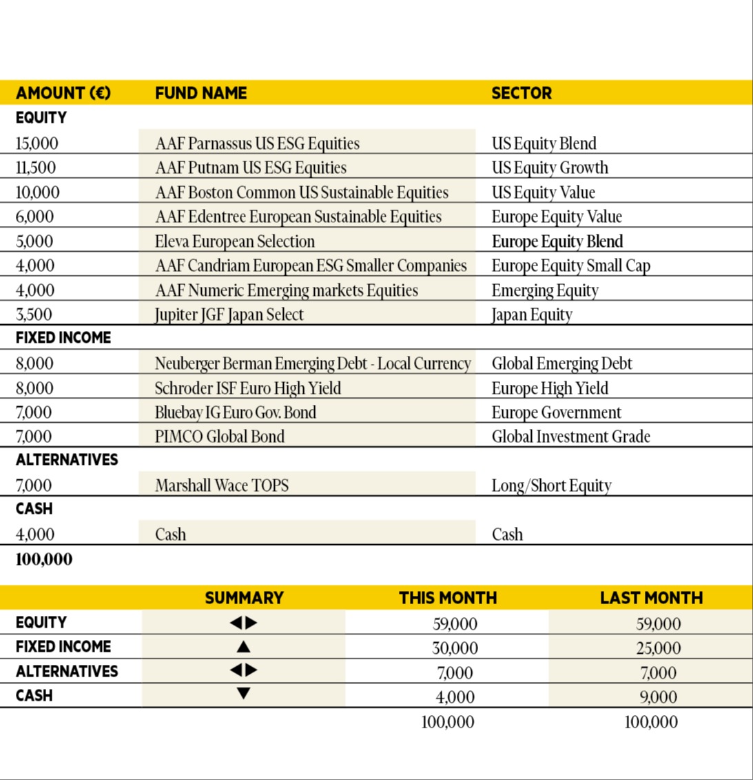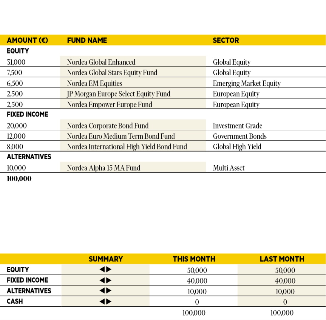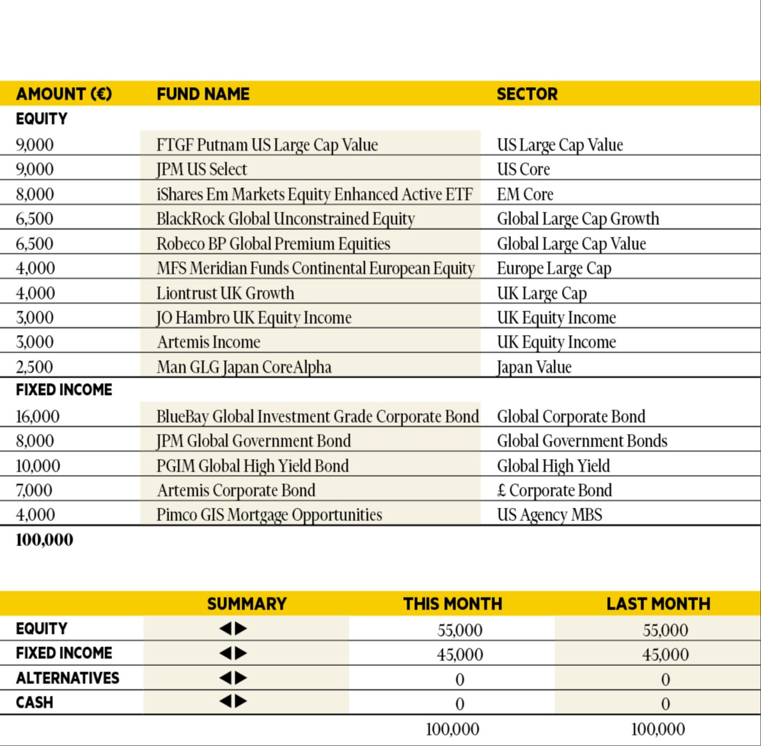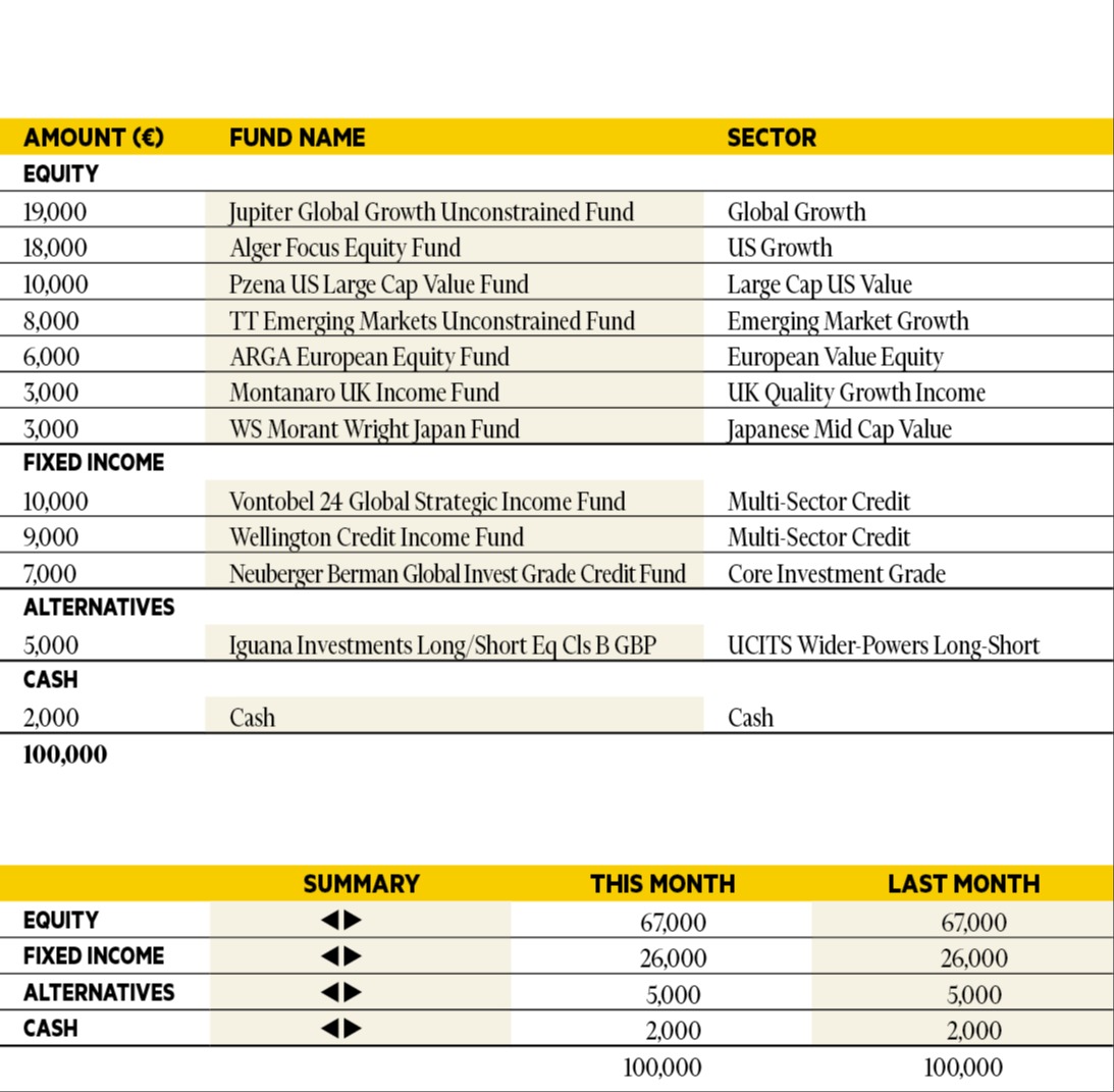 “Risk assets performed strongly in October once again, with Asia and emerging market equity taking the baton from US tech. TT Emerging Markets Unconstrained was up over 10 per cent in October, followed by Alger Focus Equity which returned 5 per cent. All selections were positive in October, but the Vontobel TwentyFour Strategic Income fund produced the lowest return at 0.4 per cent. Overall, we continue with our pro-risk positioning across the model portfolio. Our selections are unchanged.”