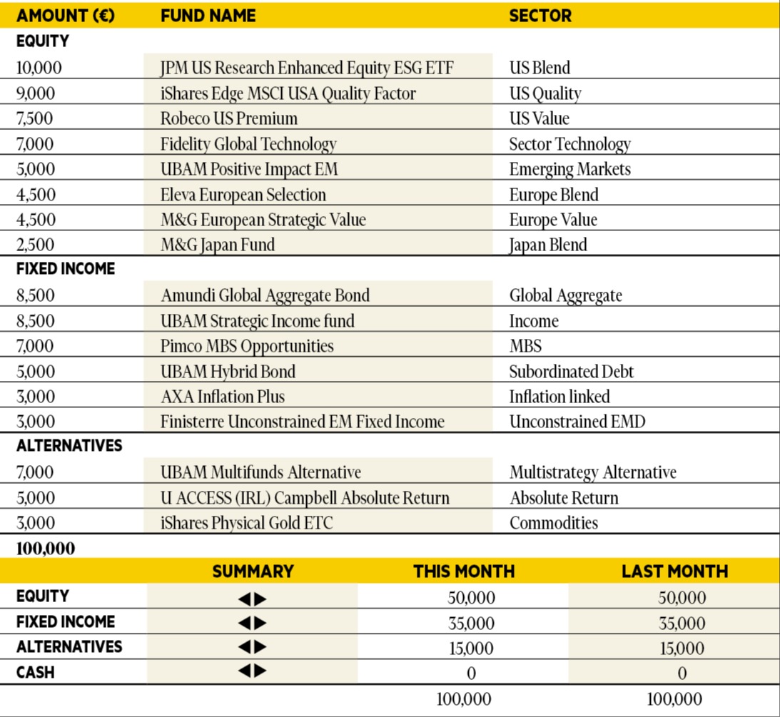 “In fixed income, markets appear to have overestimated the likelihood of rate cuts in the US, prompting a cautious stance. Exposure to dollar-denominated debt is avoided, and within the Eurozone, there are no active bets on duration or curve positioning. However, a constructive view is maintained on sovereign debt from Italy and Spain, as well as corporate bonds and subordinated financials. On the equity side, geographic diversification remains in place — albeit uncomfortably — while the growing importance of company-specific factors over broader market trends is creating opportunities for alpha through stock selection. In currencies and commodities, oil prices have been volatile due to geopolitical risks, but the base case remains for a new trading range closer to $50 per barrel, potentially even lower in euro terms. The dollar is expected to continue weakening over the long term, though a sideways trend may dominate in the near term. The most critical factor in asset allocation is the recalibration of US financial asset weightings. Economic and corporate data support maintaining an underweight in both US equities and bonds, with a strong preference to minimize dollar exposure. Overall, a cautious and highly tactical approach to risk remains the favored strategy.”